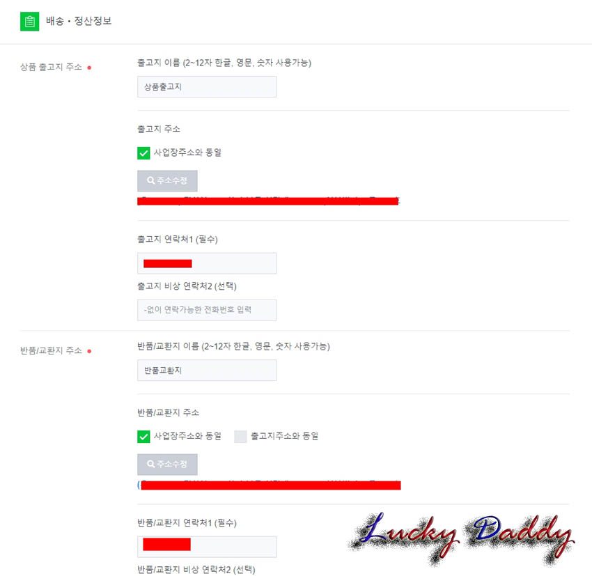 이 주소가 상품 상세페이지에 나타나는 고객센터 주소(교환, 반품 주소)가 될 것입니다.