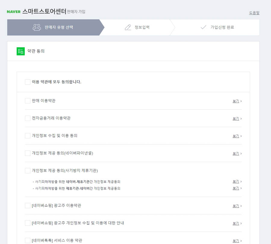 다시 스마트 스토어 가입하기 화면으로 돌아와 가입절차를 계속 진행해 주세요.