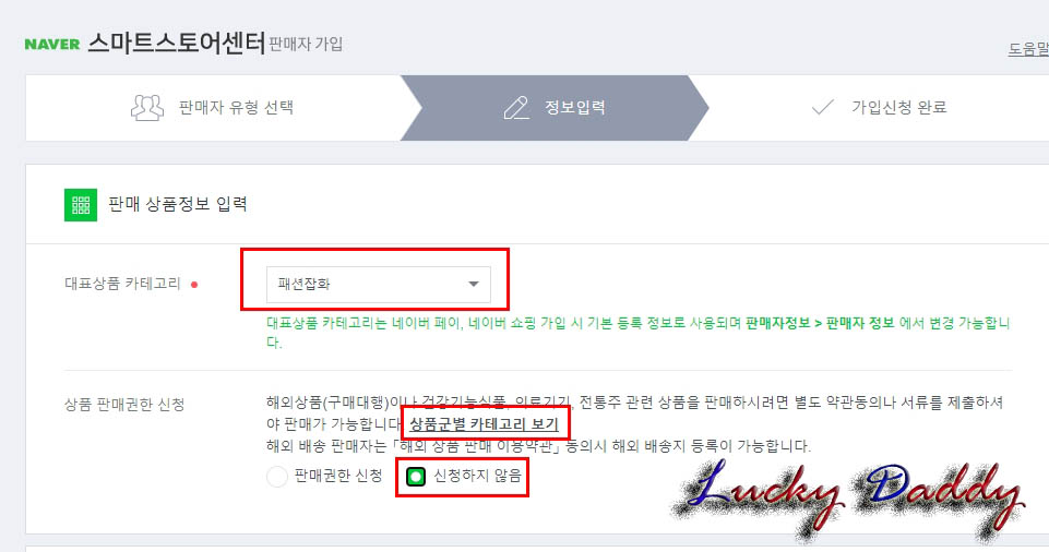 [판매상품 정보입력]에서 특정 상품만 골라서 파실 것이라면 그 상품 카테고리에 맞게 설정해주시면 되는데,