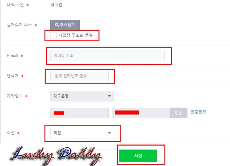 해당란을 모두 채워 주시고 [저장]을 클릭해주세요.