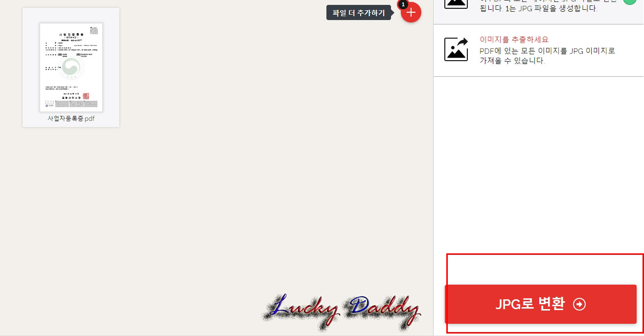 참고로 "JPG"를 "PDF"로 변환도 가능합니다.