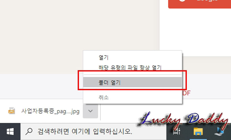 다운로드 폴더에 사업자등록증이 그림파일로 저장되어진 것을 볼 수 있습니다.