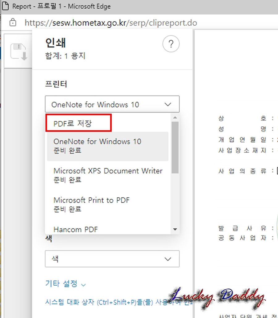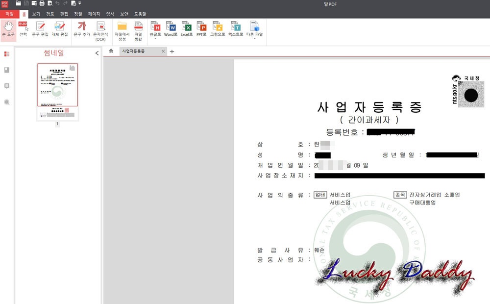 이제 우리는 사업자 등록증을 PDF파일로 가지고 있을 것입니다.