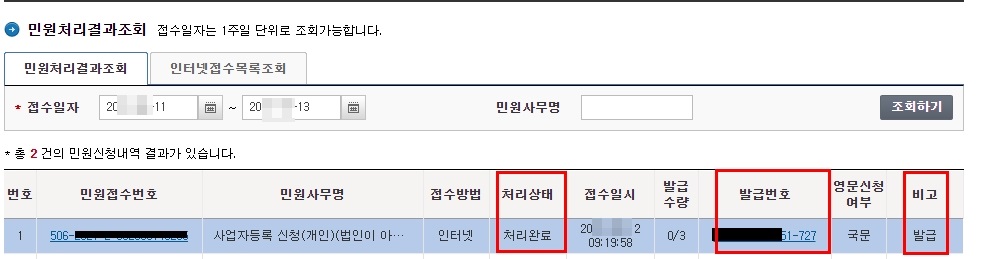 제가 신청한 사업자 등록증이 벌써 발급이 되어 있네요.