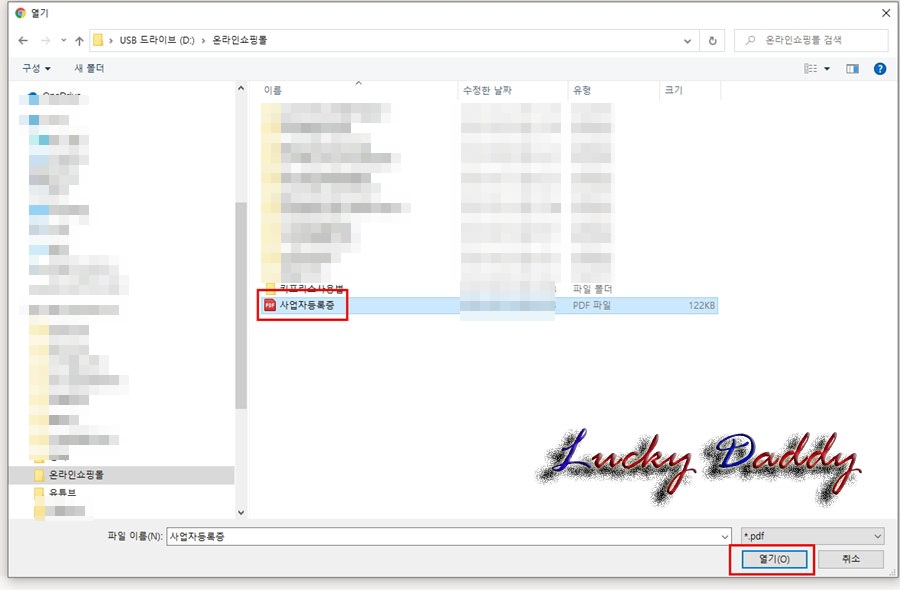 아까 사업자등록증을 저장해 둔 경로로 찾아 들어가 파일을 선택해 준 뒤 [열기]버튼을 클릭해주세요.