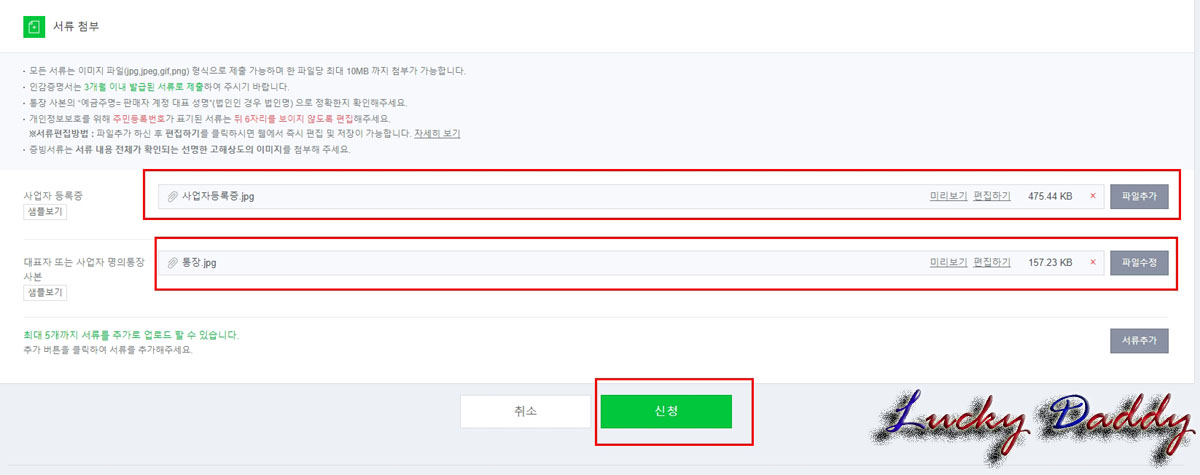 먼저 [사업자 등록증]을 첨부해 주셔야하는데,