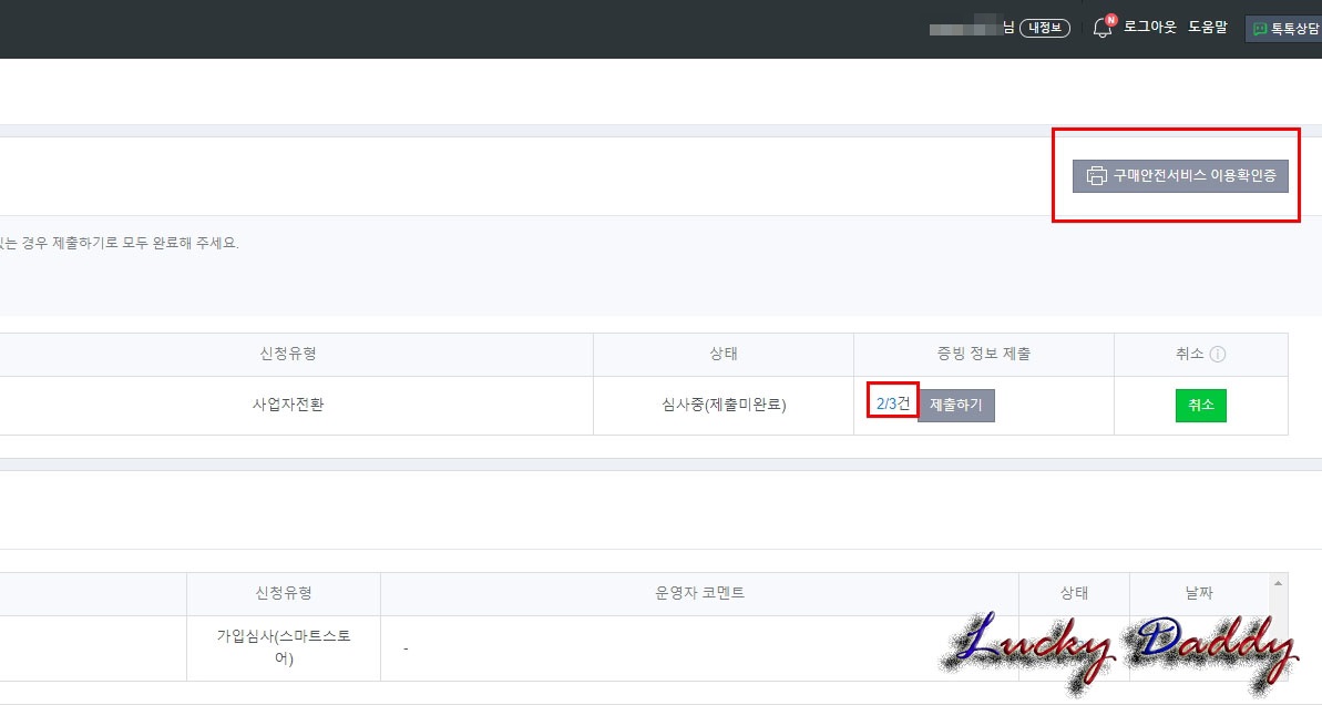 우측 상단의 [구매안전서비스 이용확인증]을 클릭해주세요.