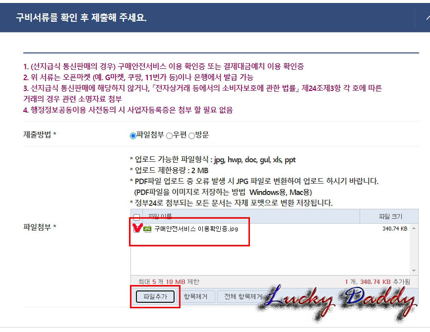 우리는 지난 시간에 통신판매업 신고에 필요한 서류인 [구매안전서비스 이용확인증]을" PDF파일" 형태로 다운을 받은 후 "JPG파일"로 변환해 저장을 해두었습니다.
