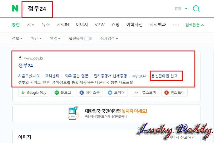 1. 먼저 네이버에 “정부24”라고 입력을 하면 제일 먼저 나오는 "정부24" 홈페이지에 접속해주세요.