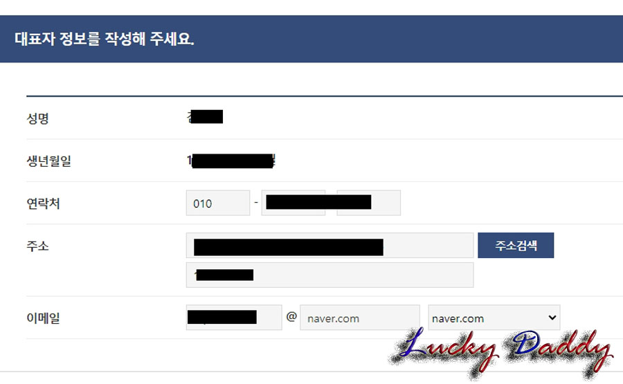 7. [대표자 정보]를 작성해주세요.