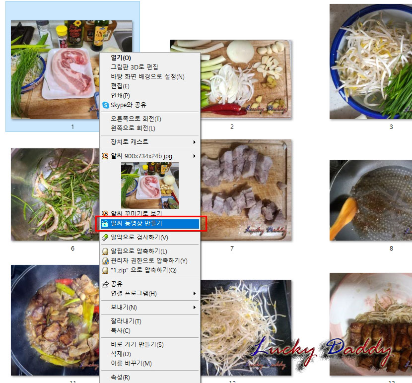 일단 알씨가 설치했다고 가정을 하고 내가 움짤을 만들고자 하는 사진에 마우스 오른쪽버튼을 클릭하면 나타나는 팝업메뉴에서 [알씨 동영상 만들기]를 클릭해 주세요.