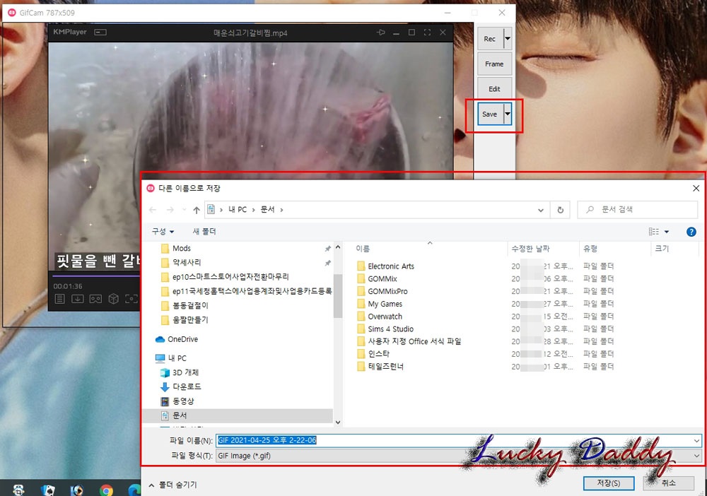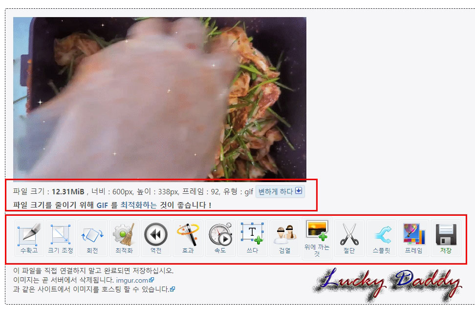 우측 아래 [저장]버튼을 클릭하시면 .gif파일 형태로 움짤이 생성이 됩니다.
