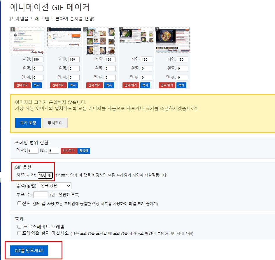 아래 [GIF를 만드세요] 버튼을 클릭해주세요.