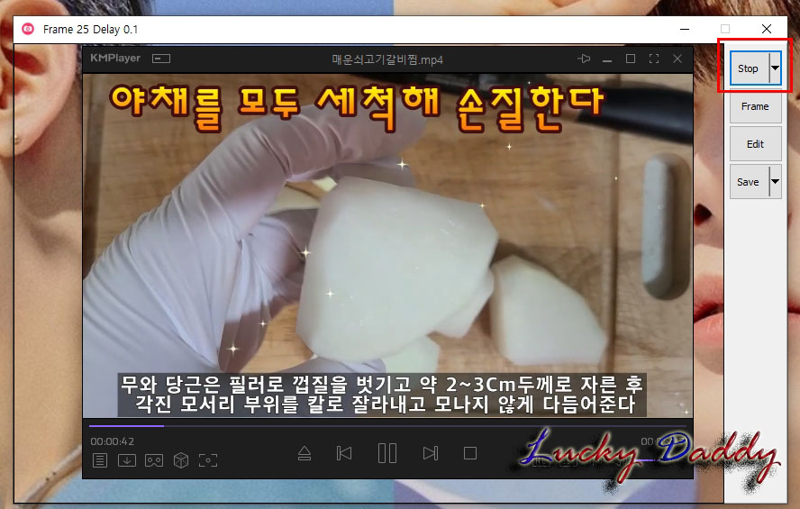 아까 [Rec]버튼이 있던 위치에 이번에는 [Stop]를 클릭하면 내가 원하는 구간만 동영상 녹화가 완료 됩니다.