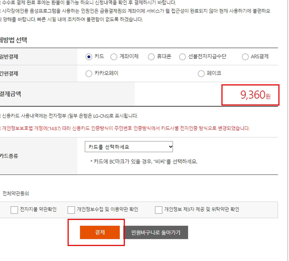 접수비용 총액 9,360원이네요.