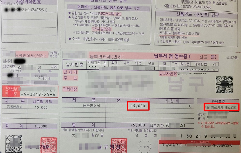 보건소 2층에 가서 “면허세 지로 영수증”을 받아서 납부하고,