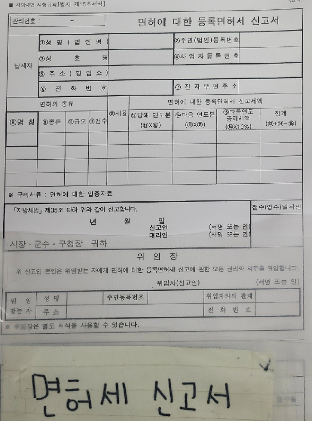 그리고 신고증 찾기 전에 면허세를 나중에 납부하셔야하는데,