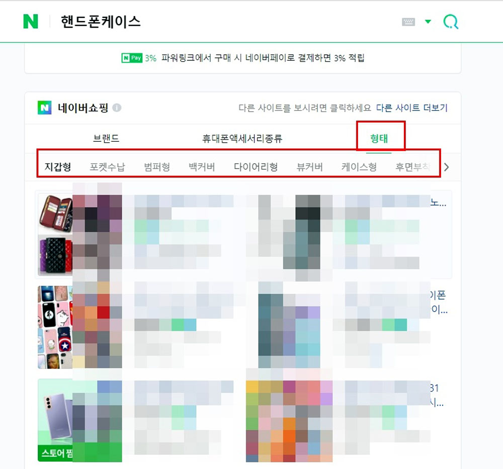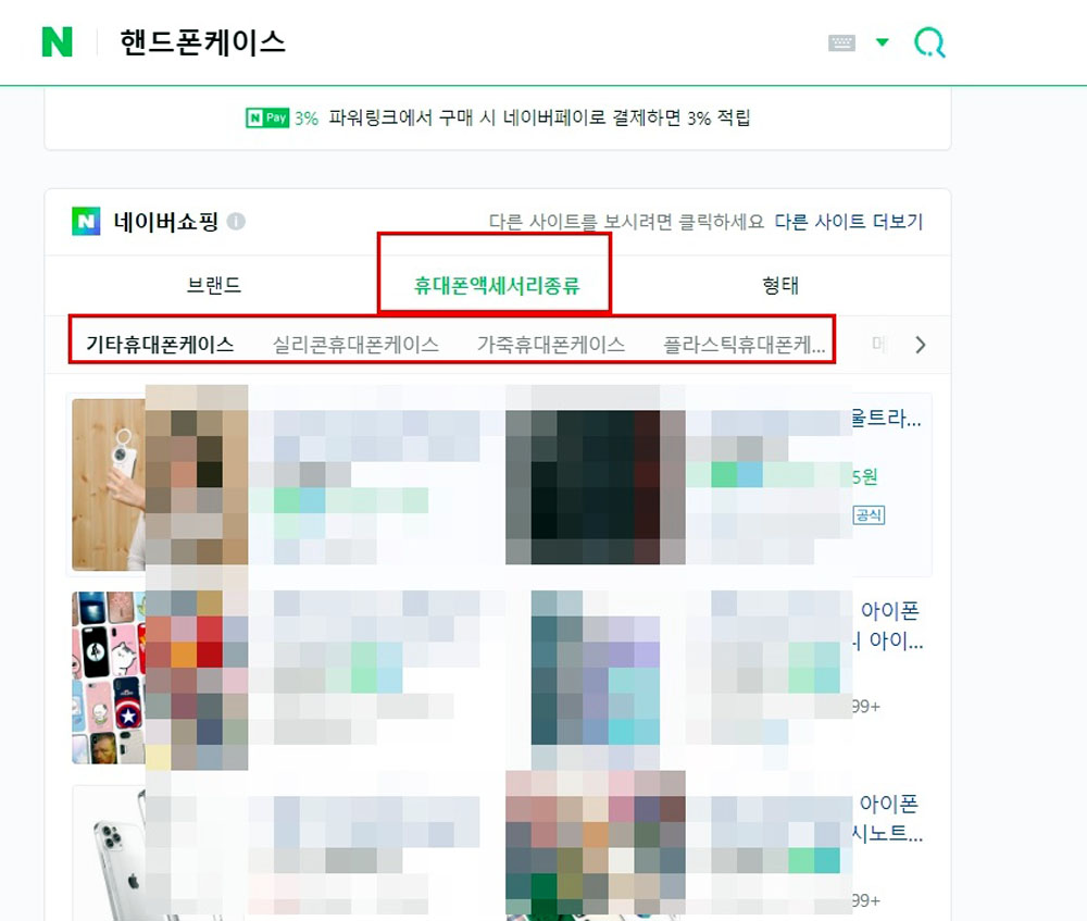 네이버 통합 검색창에 ‘핸드폰케이스’라고 검색을 해 보았습니다.