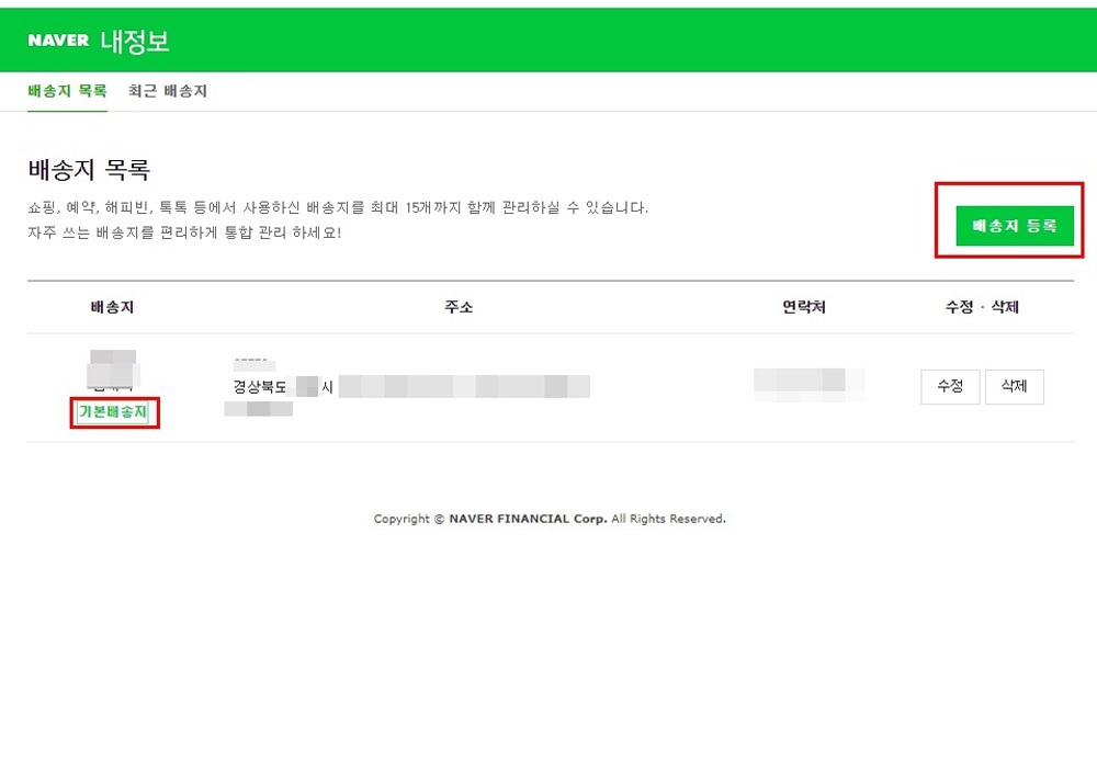 저는 집이 경북인데, [기본 배송지]가 저의 집으로 되어있습니다.