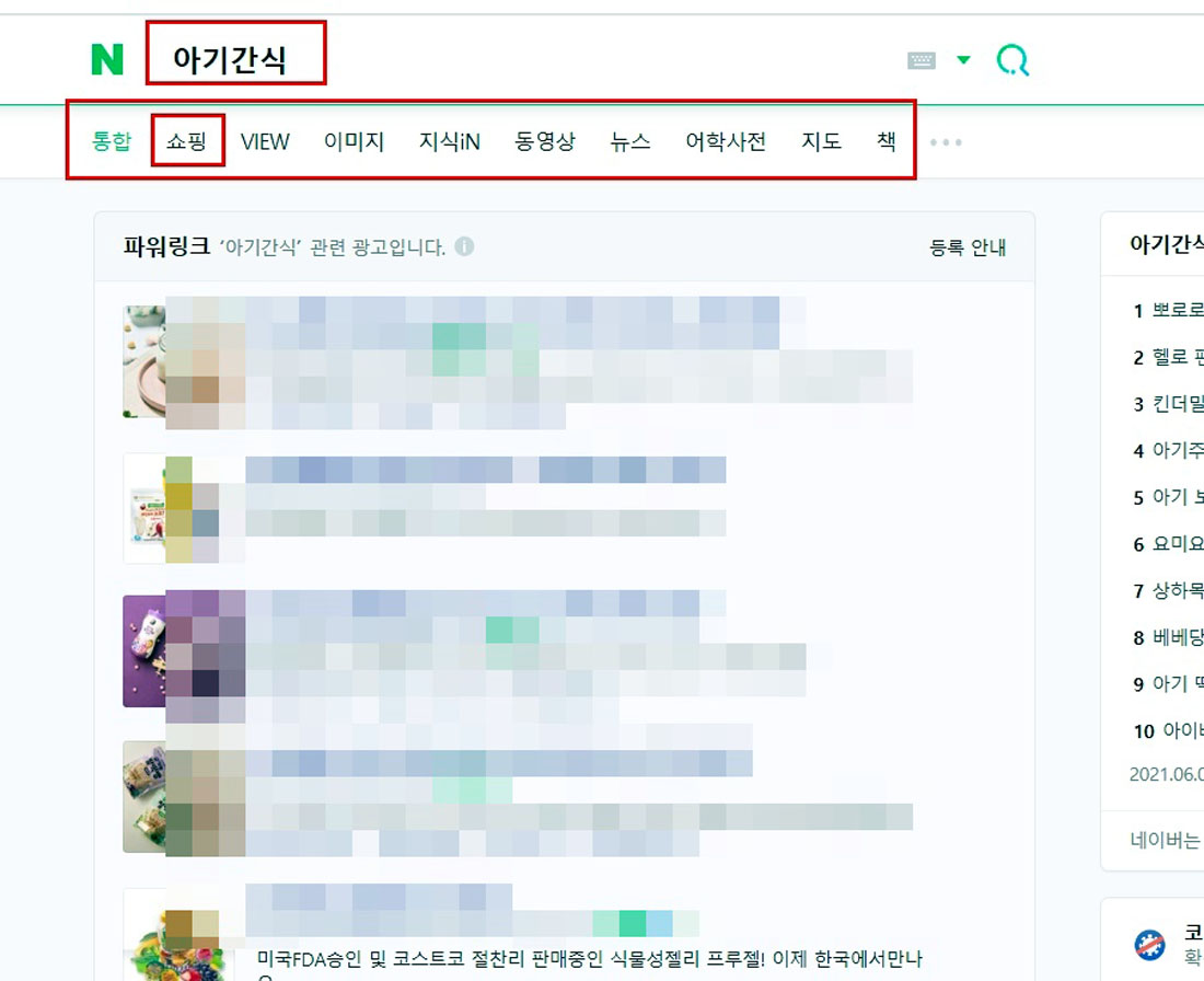 저는 ‘아기간식’이라고 입력을 했습니다.