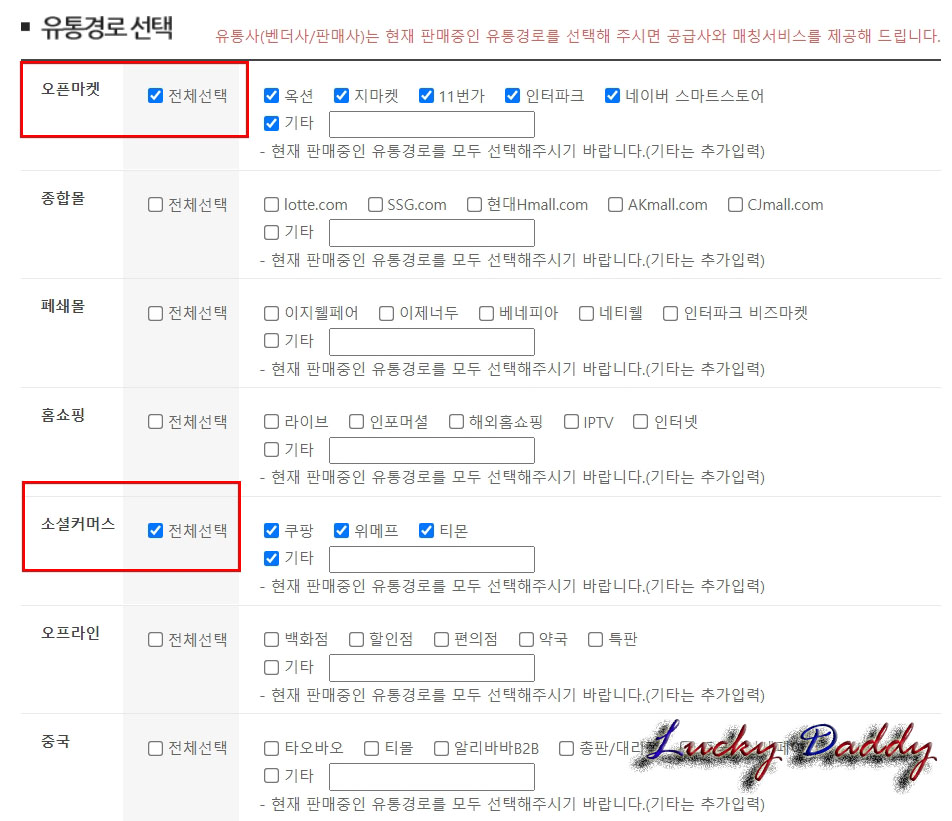 종합몰이나 폐쇄몰 까지 진출 할 일이 없겠죠. 자신이 홈쇼핑이나 폐쇄몰 등에서 팔고싶으시다면 해당하는 곳에 체크를 해주세요.