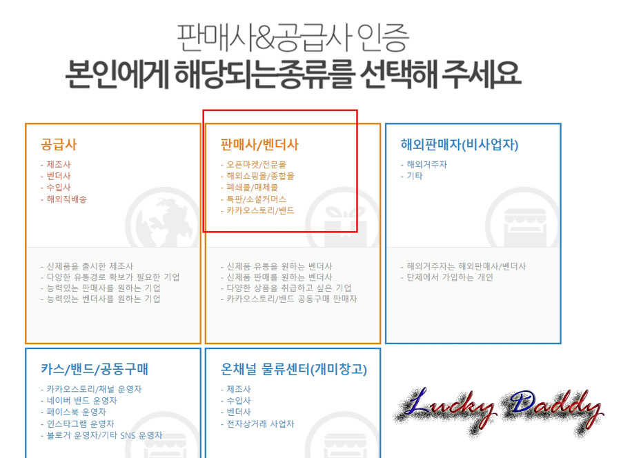 중요한 것은 [인증하기]입니다. 판매사(셀러)인증/벤더인증을 클릭해주세요.