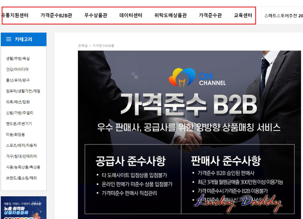 14. 온채널 메뉴를 한 번 둘러보니 가격준수B2B등 다양한 메뉴로 구성이 되어져 있습니다.