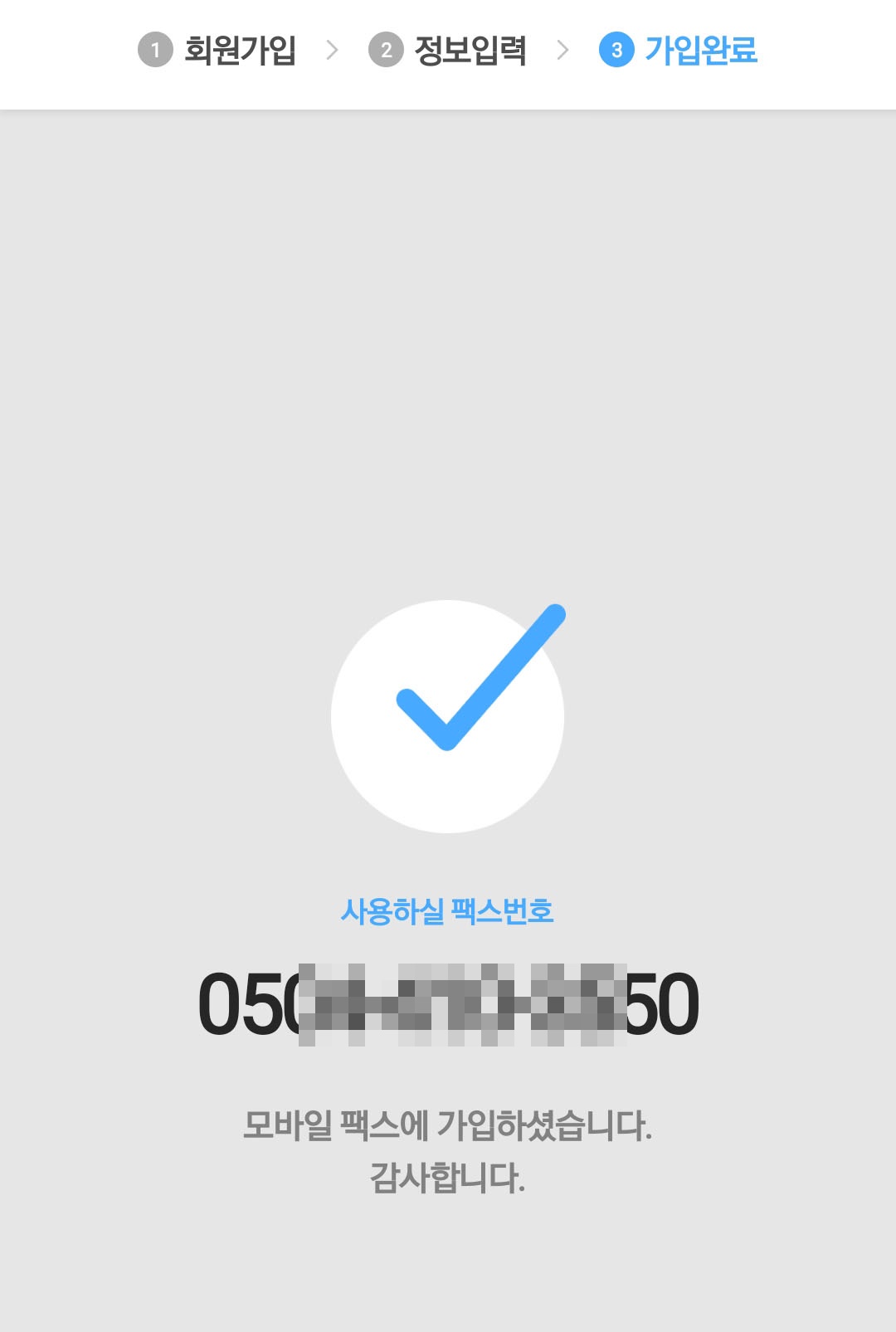 모바일팩스에 가입이 완료되었습니다.