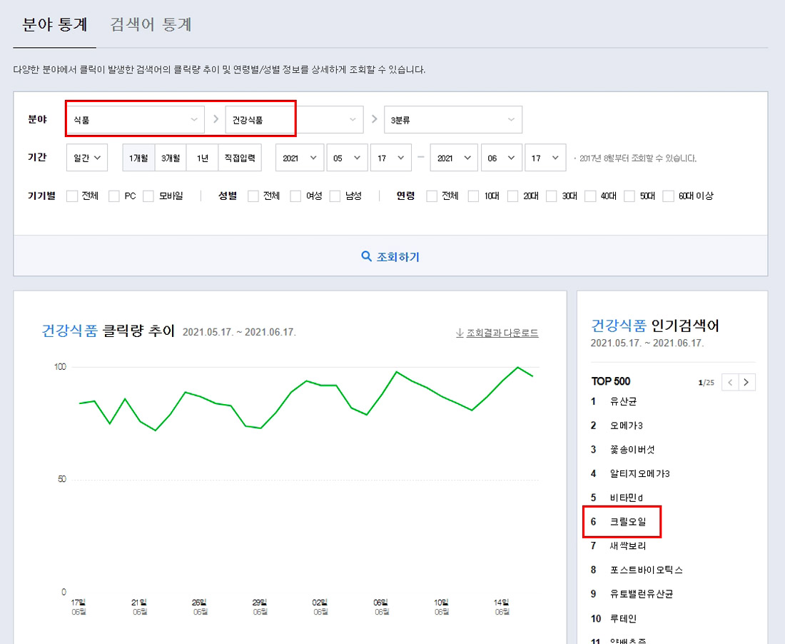 예를 들어 내가 분석도구를 이용해 찾은 상품이 ‘크릴오일’이라고 가정하고,