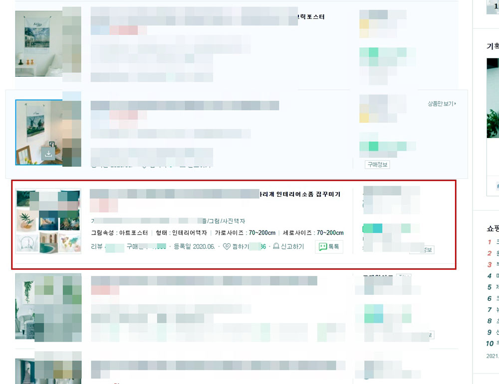 아래는 1페이지 하위에 있는 다른 셀러분의 상세페이지에 들어 간 것입니다.