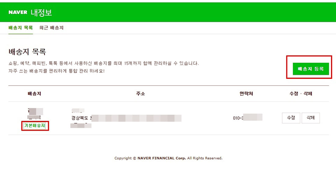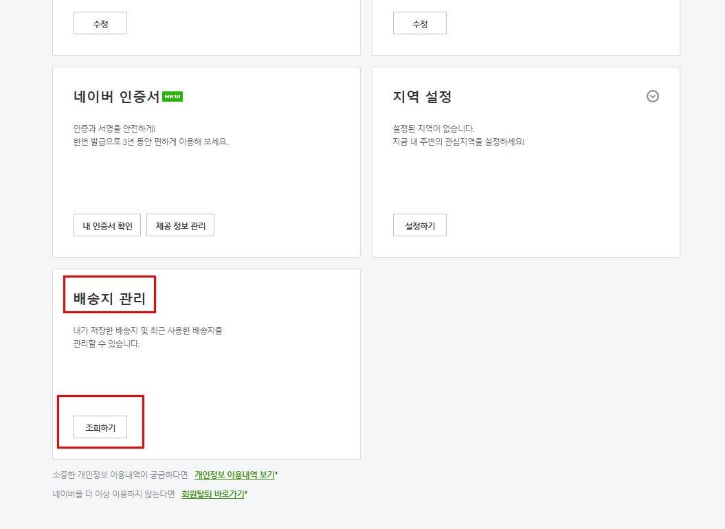이제 팔릴 제품인지 분석을 했으니 다시 네이버 정보에서 [기본배송지]를 자신의 실제 주소로 변경해주세요.