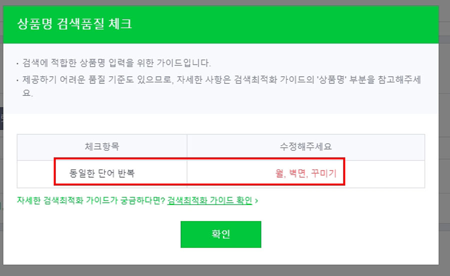 아래 [상품명 검색품질 체크]를 꼭 눌러주세요.