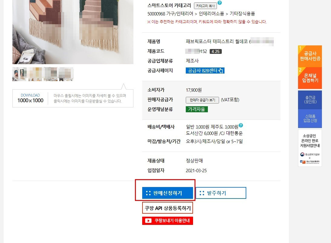 참고로 타 도매사이트에는 [판매신청하기]라는 버튼이 없고 그냥 품절이 아니라면 전부 가지고 올 수있지만,