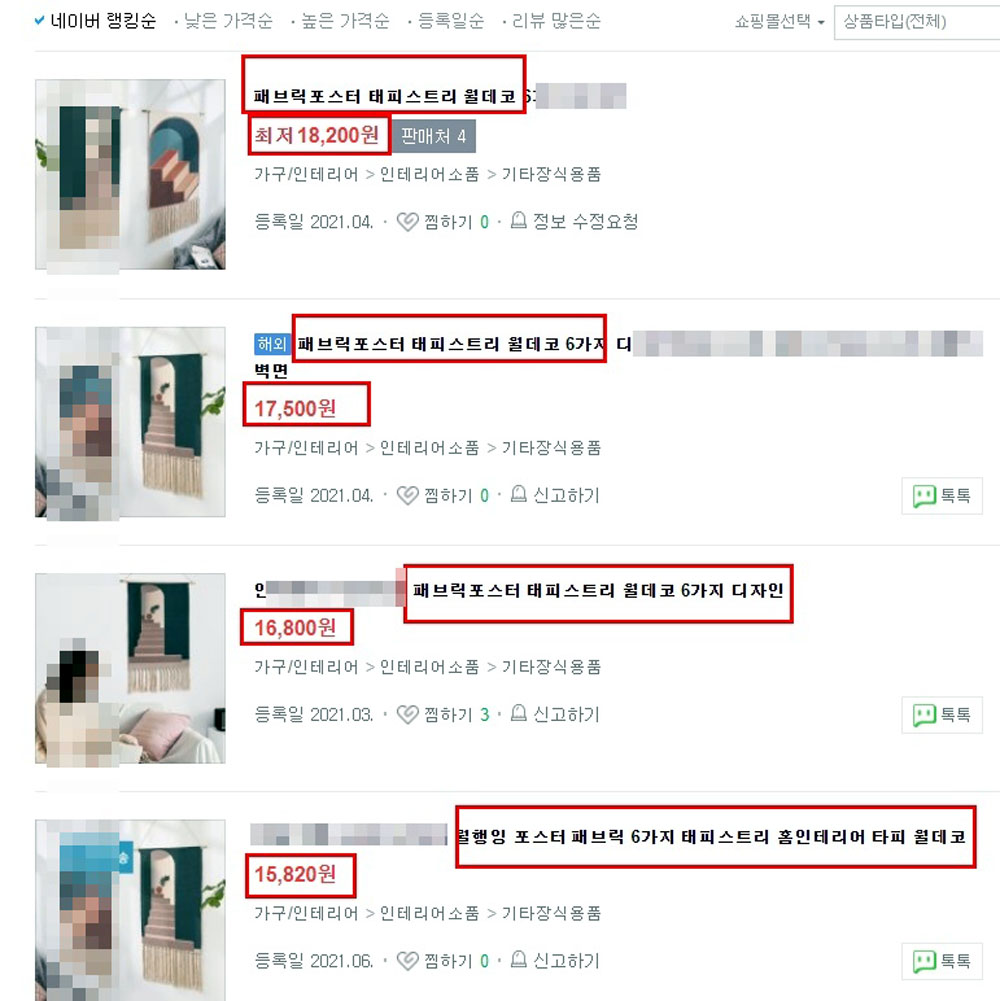 저는 상품명을 [태피스트리 월행잉 인테리어천 월데코 벽면꾸미기 패브릭포스터]라고 32자로 만들어 지었습니다.
