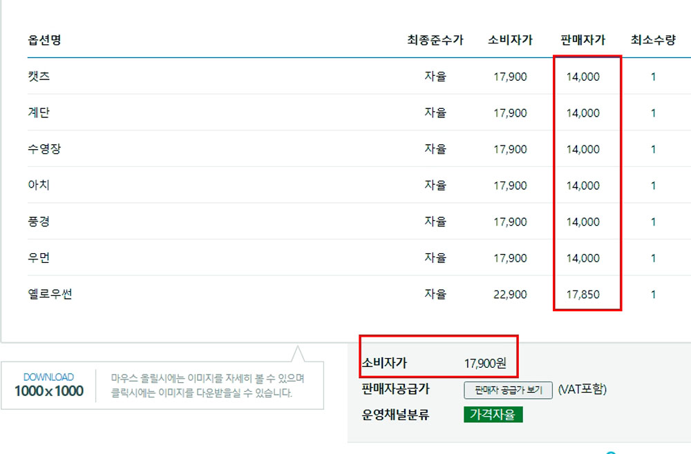 제가 가지고온 도매처에는 [가격자율]이고 권장 소비자가는 17,900원 이며 우리에게 주는 [판매자가]는 14,000원입니다.