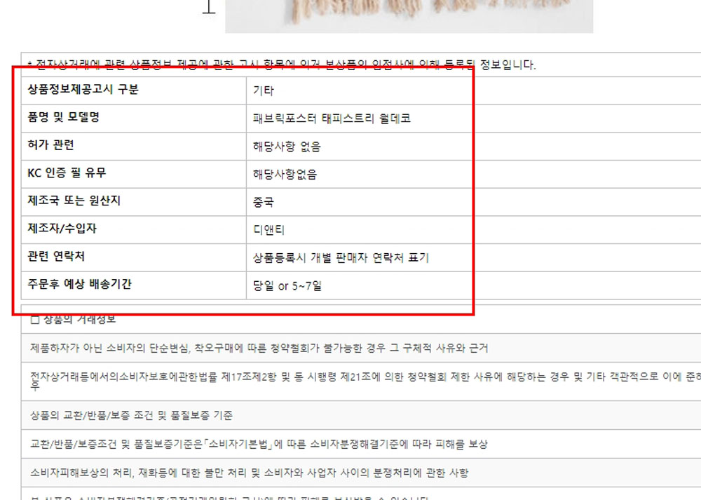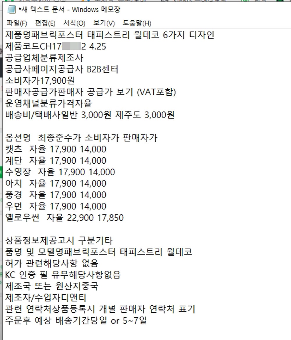 도매사이트에서 제품 상세정보페이지 아래로 쭉 내려 보면 [상품정보 제공고시]부터 [주문 후 예상 배송기간]까지 복사해서 메모장에 붙혀넣기 해주세요.