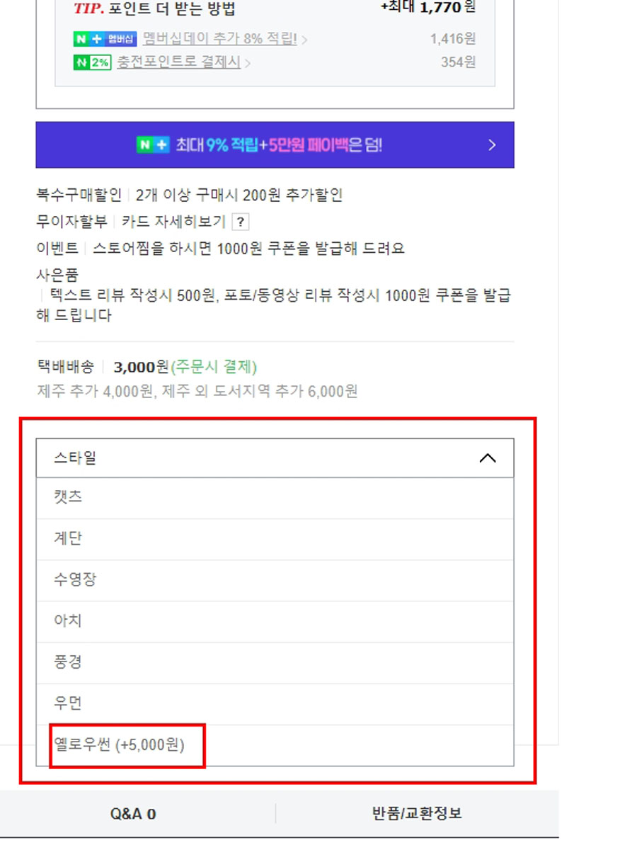 저는 여러 가지 스타일이 있는 제품이라 “스타일”이라고 적었어요.
