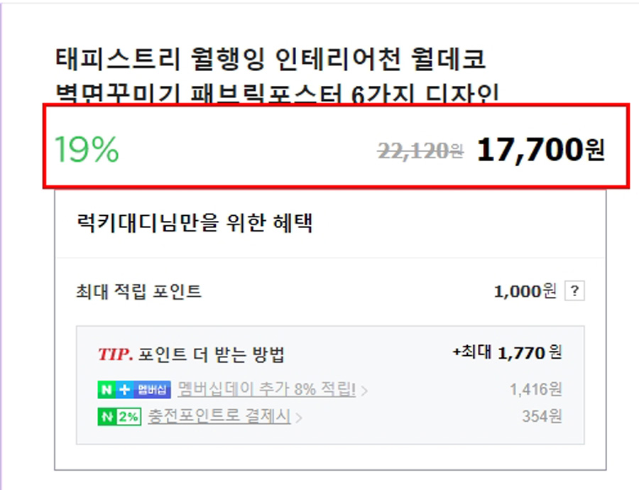 이것은 네이버에서 추가로 주는 할인이 약간 있습니다.