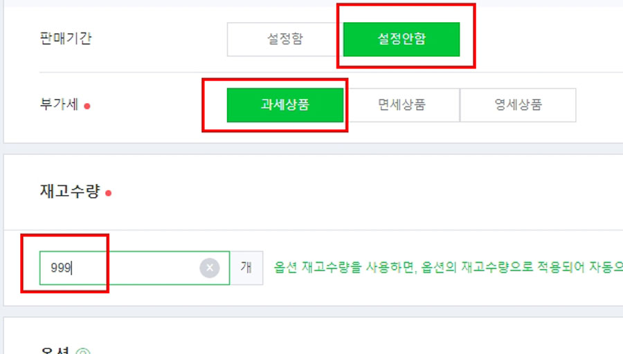 [재고수량]은 사입이라면 자신이 보유하고 있는 상품개수를 입력하면 되지만,
