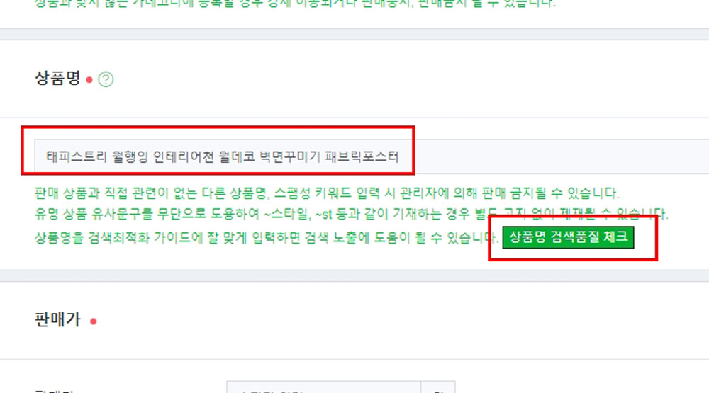 3. 상품명을 정했으면 복사-붙혀넣기 하지 말고 직접 타이핑해서 작성한다.