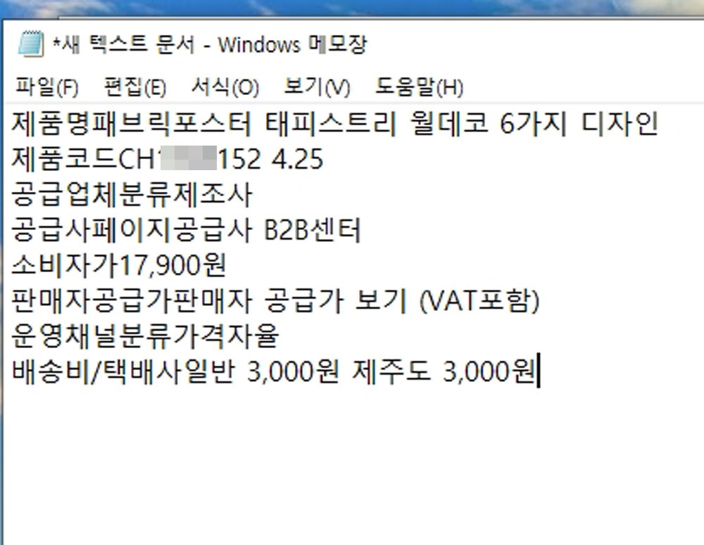 최종적으로 메모장에 복사해 놓은 이 상품의 정보는 아래 사진과 같습니다.