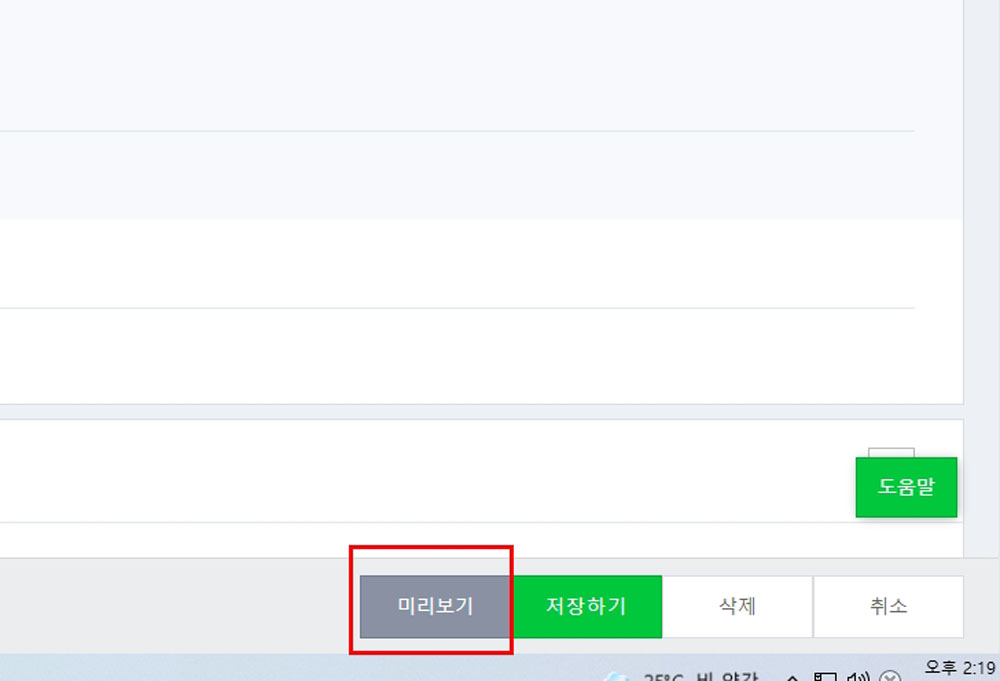 상품 등록하다가 어떤 모습으로 나타날지 잘 모르면 화면 하단에 있는[미리보기]를 클릭하시면 됩니다.
