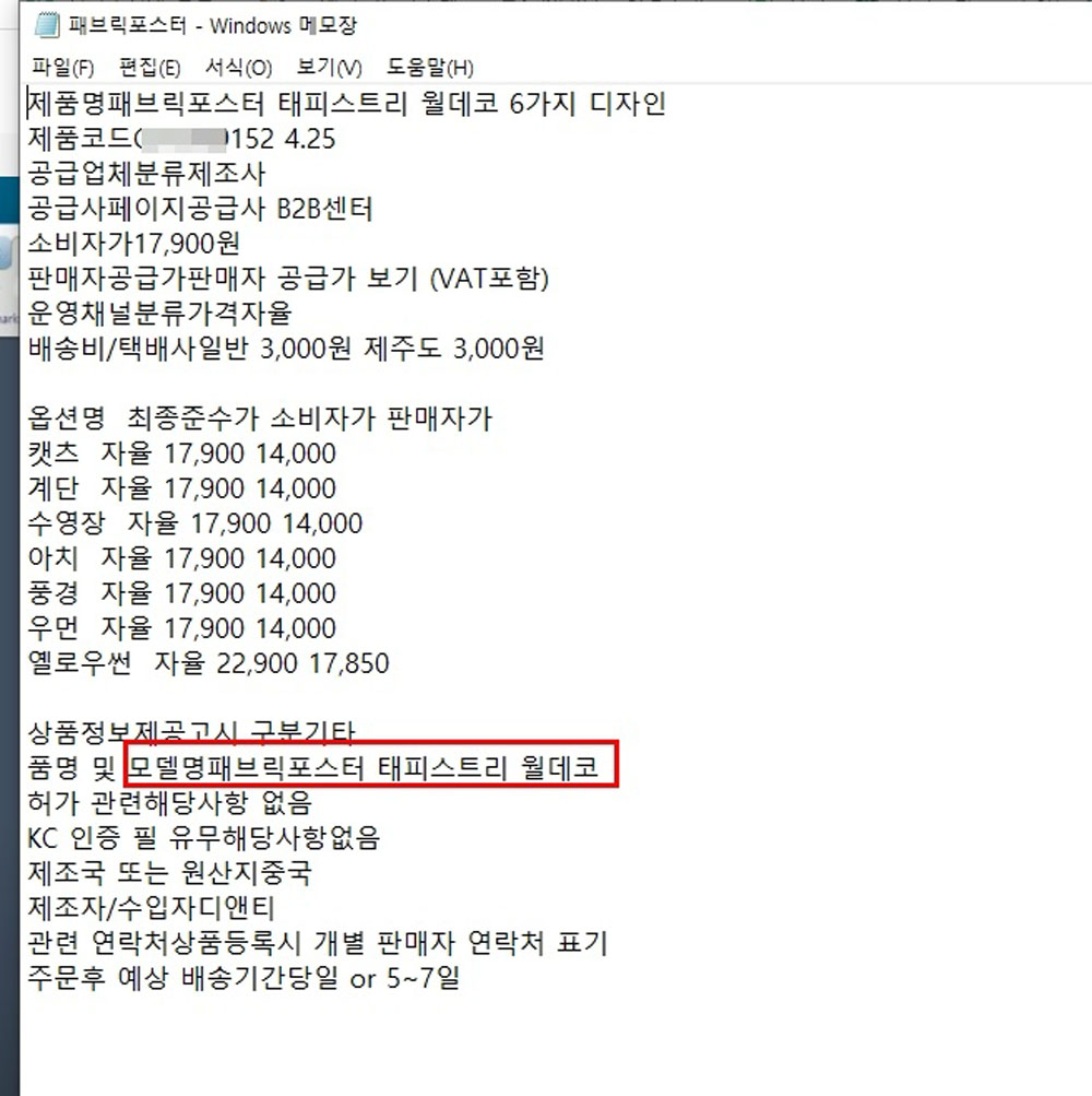 스마트스토어 모델명에 붙혀넣기를 합니다.