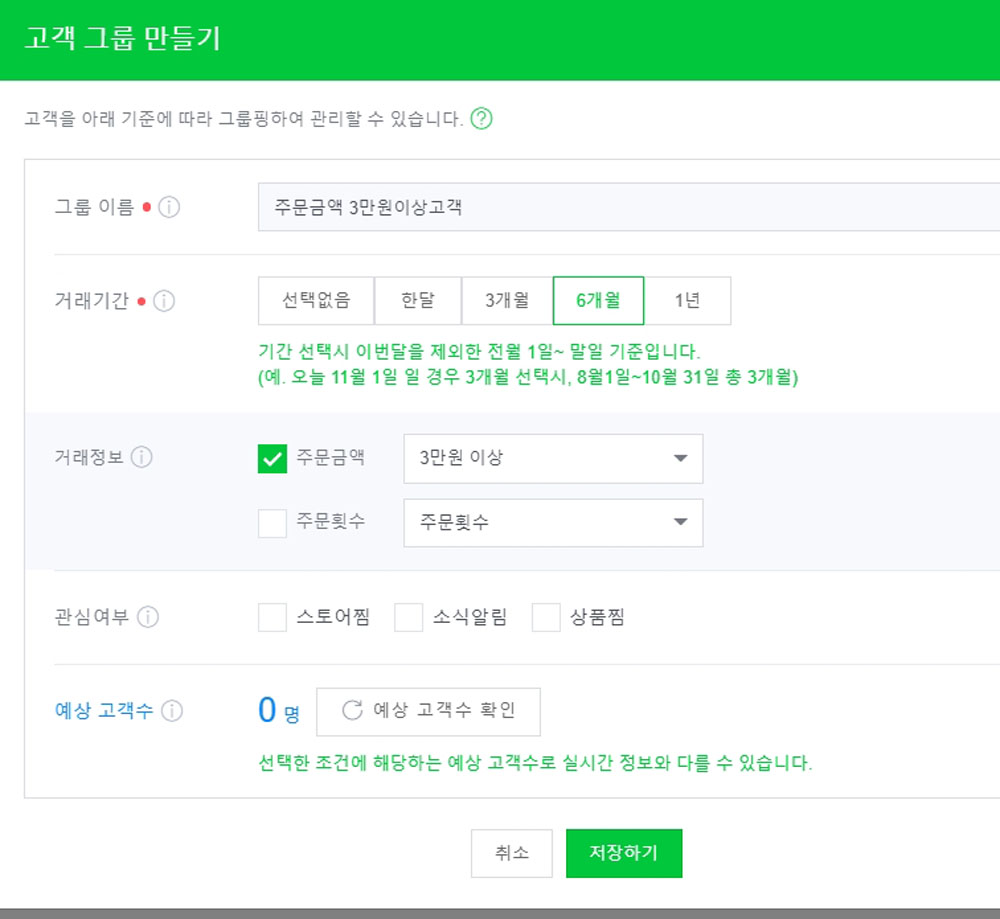 저는 [그룹이름]에 ‘주문금액 3만원 이상고객’이라고 정하고