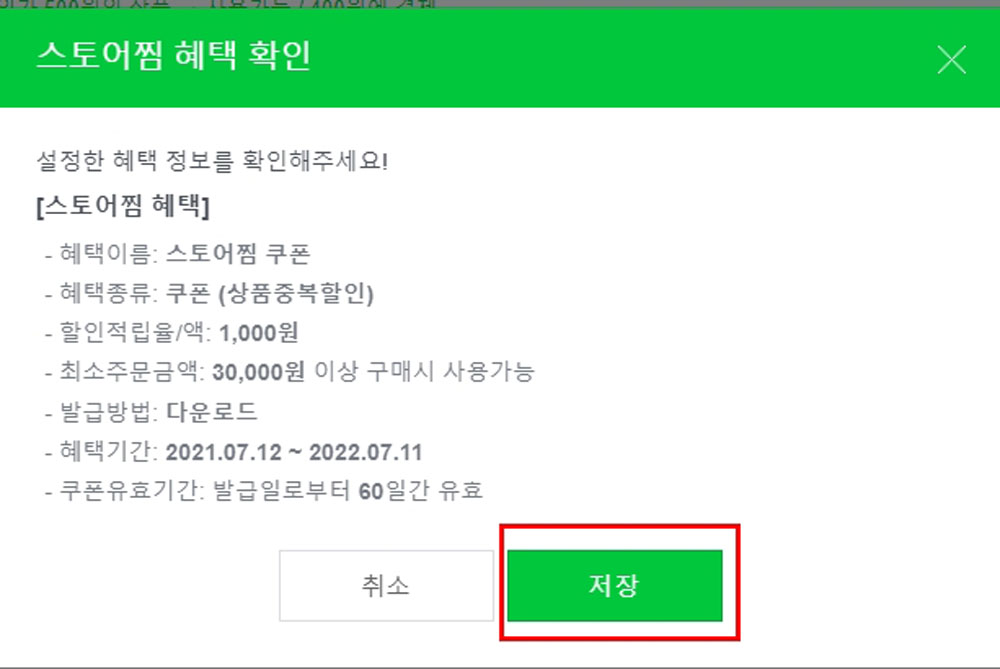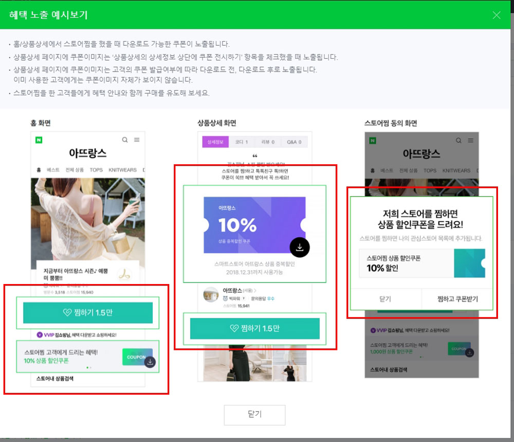 [쿠폰종류]는 위의 “스토어찜”의 설명과 동일합니다.