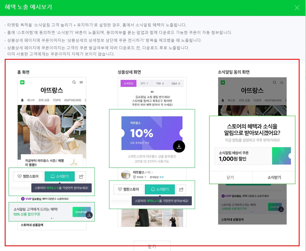 ‘소식알림 고객 늘리기 + 유지하기’ (스토어 내 혜택 노출)은