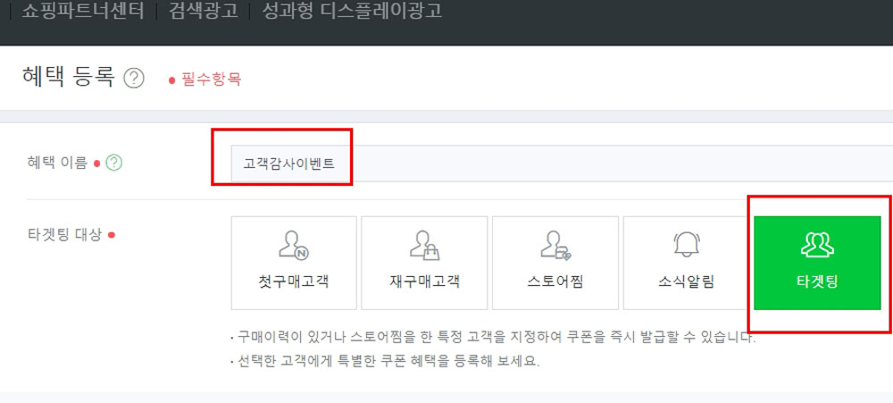 [타겟팅]은 말 그대로 특정인이나 특정 그룹을 만들어서 혜택을 주는 방법입니다.