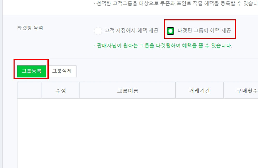 ‘그룹에 혜택 제공’에 체크하고 [그룹등록]을 클릭해주세요.