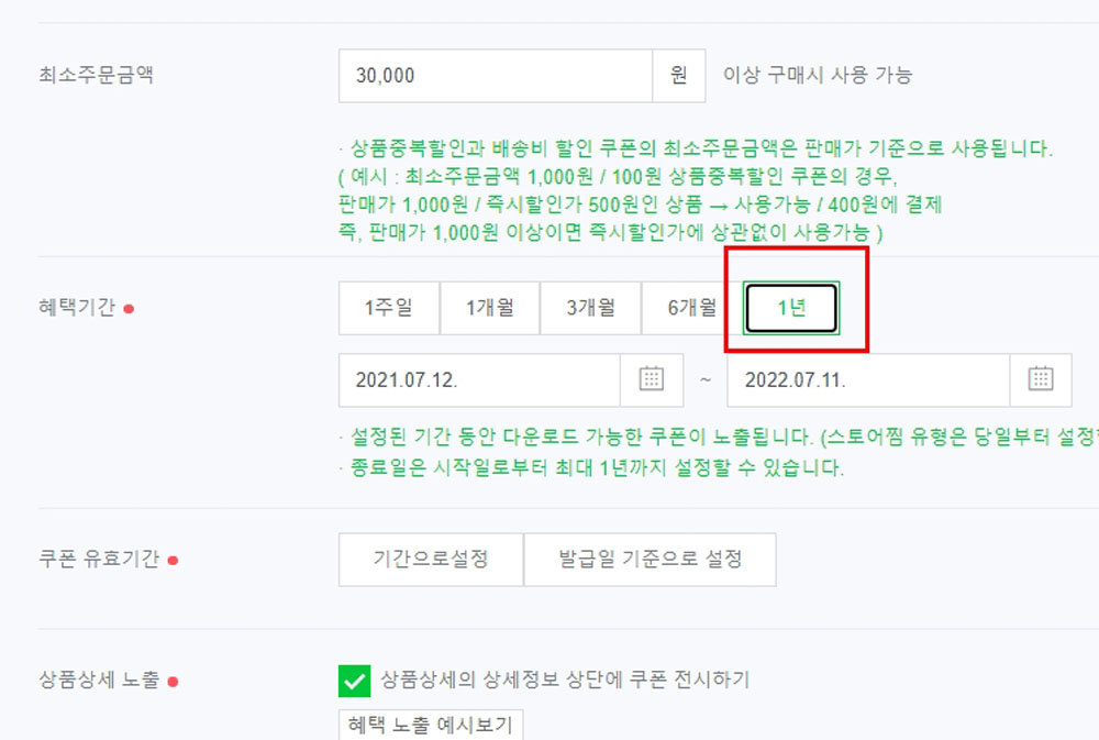 [혜택기간]은 설정된 기간 동안 다운로드 가능한 쿠폰이 노출되며,