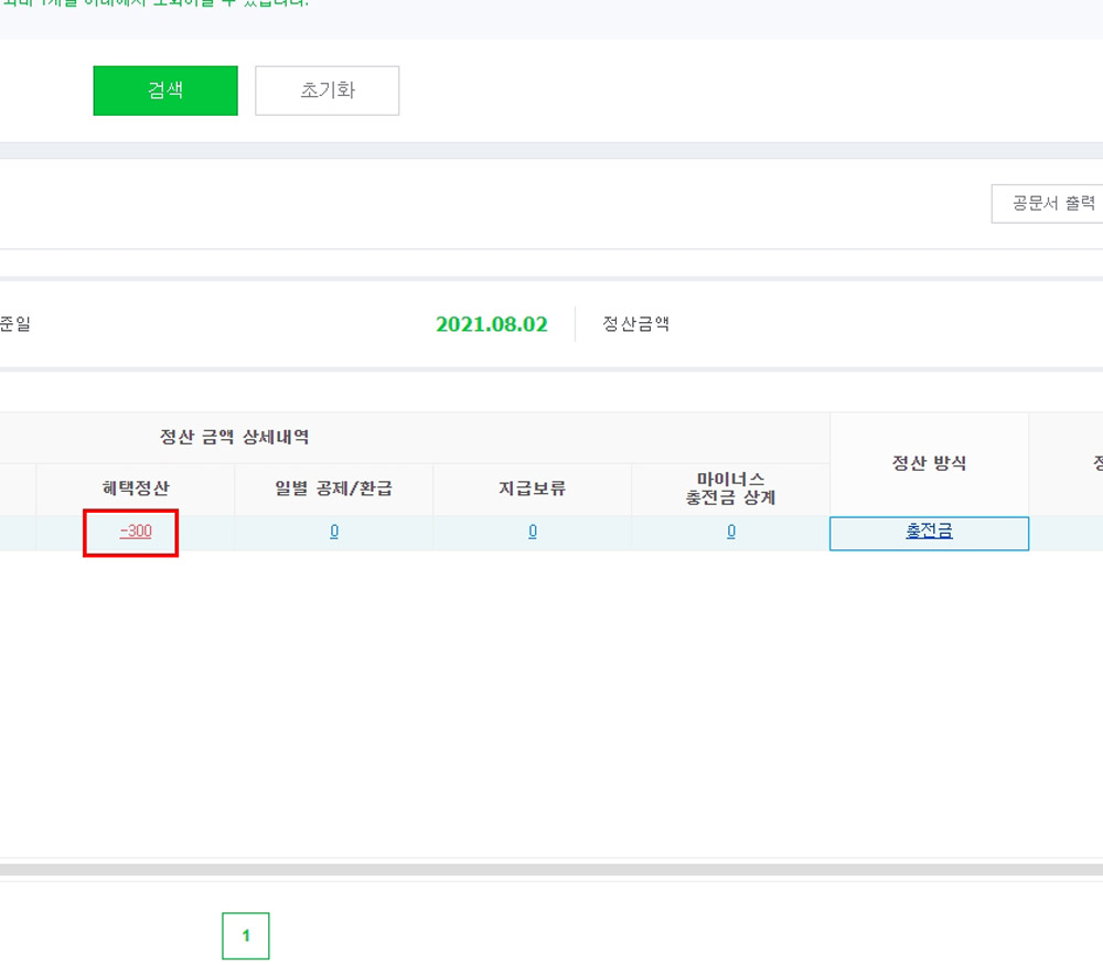 [혜택정산]에 “-300”이라고 나와 있고, 충전금에서 빠져나간다고 되어있어요.